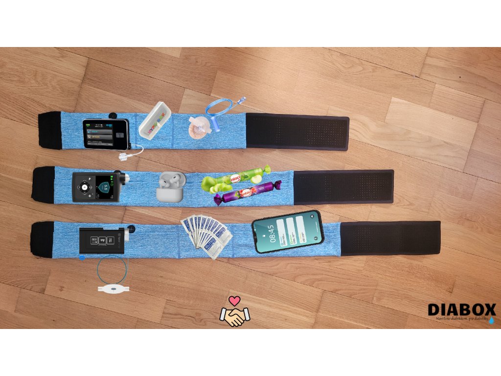 bezpečné nošení pumpy/čtečky, rychlou pomoc při hypu a přehledné uložení cukrů.