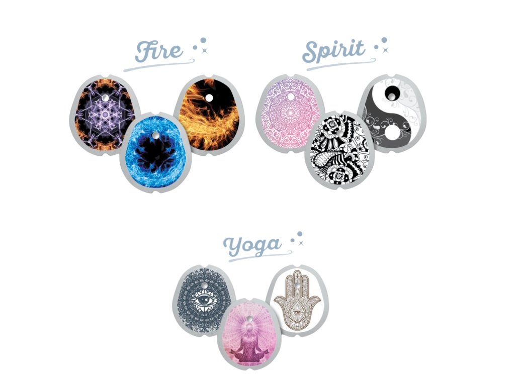 Sada samolepek „Yoga & Energy“ pro Dexcom G7 spojuje tři nejoblíbenější designy –